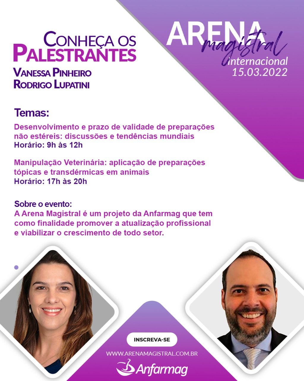 A Anfarmag – Associação Nacional de Farmacêuticos Magistrais – realizará no dia 15 de março de 2022, de forma on-line, edição internacional do evento “Arena Magistral” com programação específica voltada ao setor.